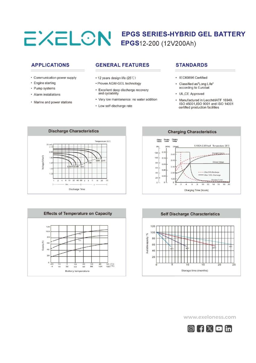 Exelon 12V 200 AH Derin DeÅŸarj Jel Akü