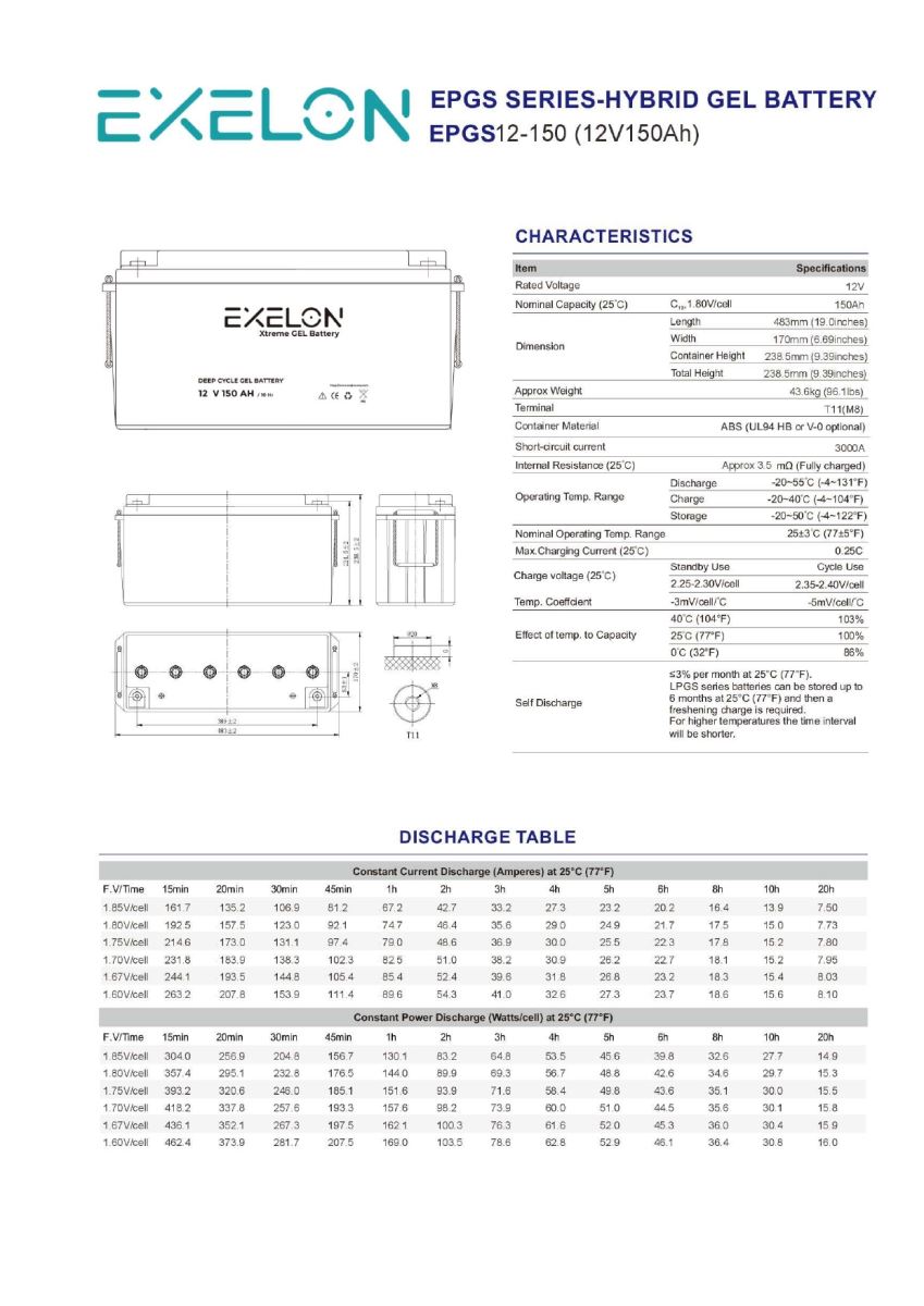 Exelon 12V 150AH Derin DeÅŸarj Jel Akü