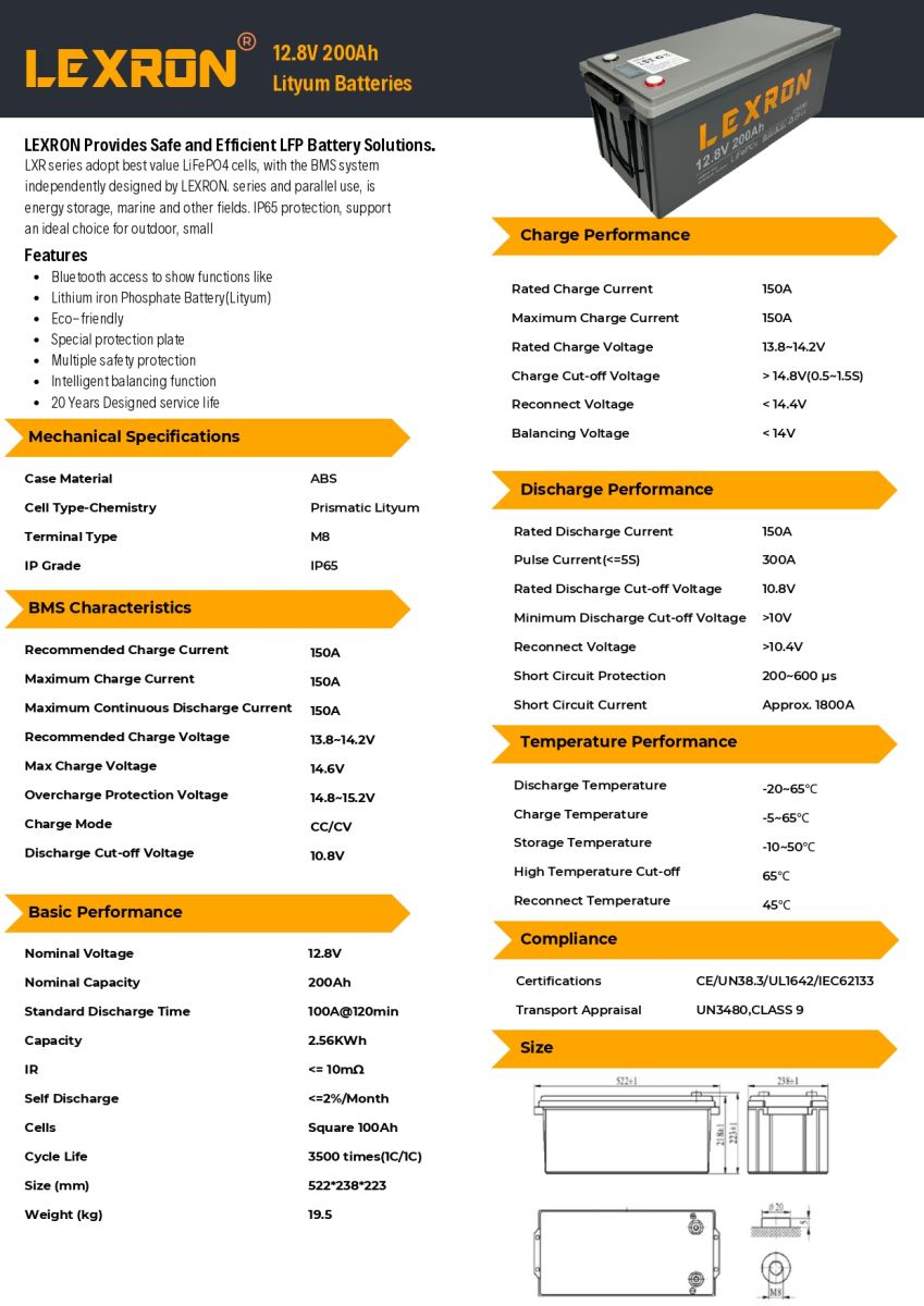Lexron 12,8V 200 Amper Lityum Akü