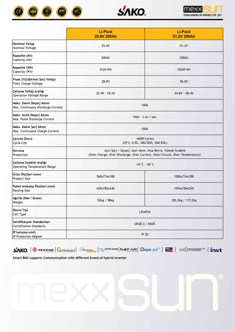 Li-Pack 51,2V-200Ah (LiFePo4) | Lityum Akü | Aküler | Solar Enerji Marketiniz