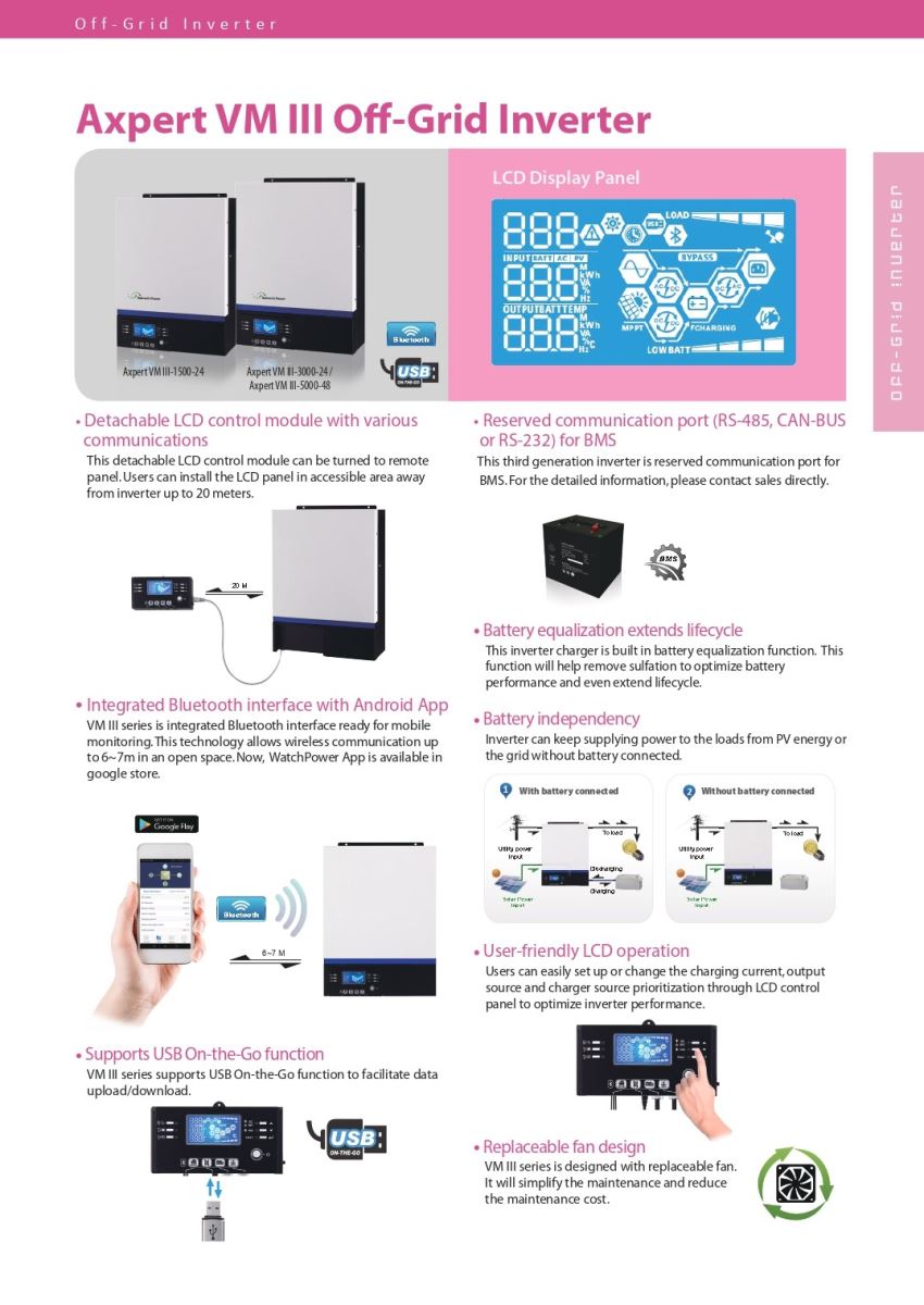 Max 48V 5000 Watt 5KVA Akıllı İnvertör (80Ah Mppt Solar Åžarj Kontrol Cihazlı) - VM III 5K -48