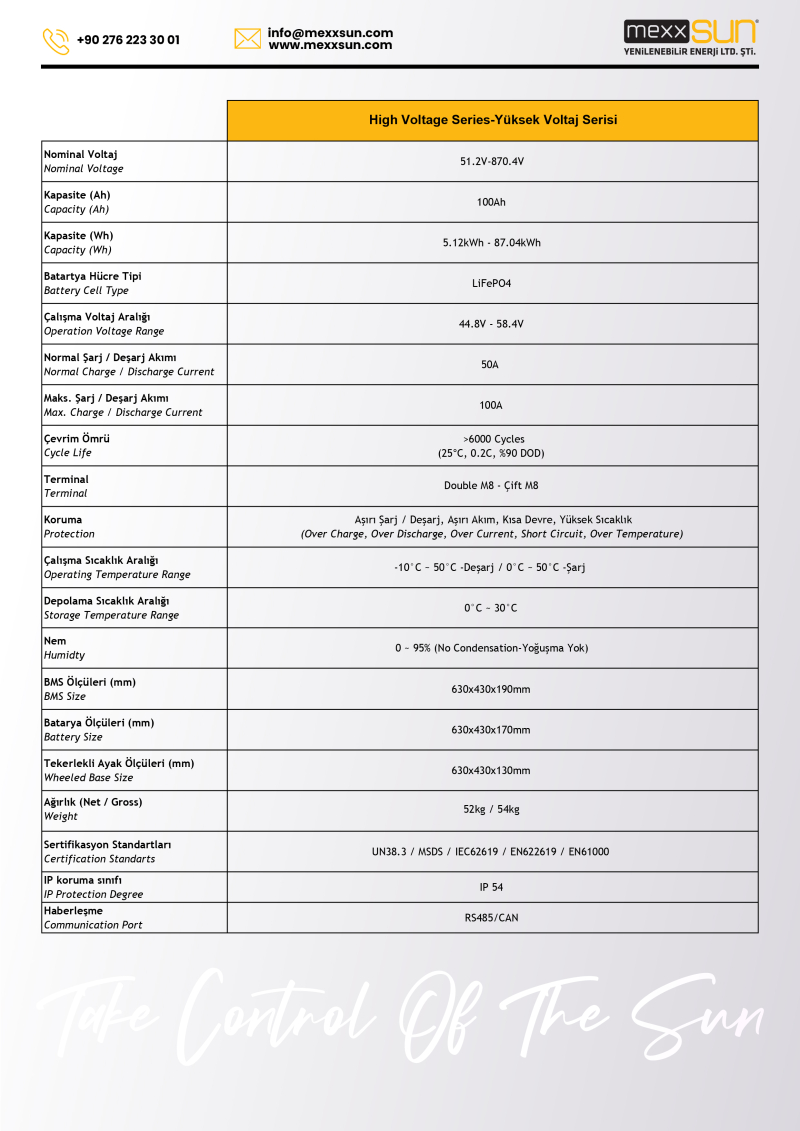MEXXSUN Yüksek Voltaj Lityum Akü 61.44 kWh