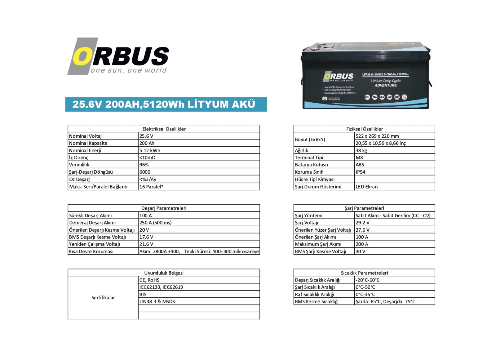 Lityum Demir Fosfat (LiFePO?) entegre Batarya Yönetim Sistemi (BMS) ile donatılmış 24 V 200 Ah enerji modülü. GeliÅŸmiÅŸ BMS; hücre dengeleme, aşırı ÅŸarj/deÅŸarj, kısa devre ve sıcaklık koruması saÄŸlar.