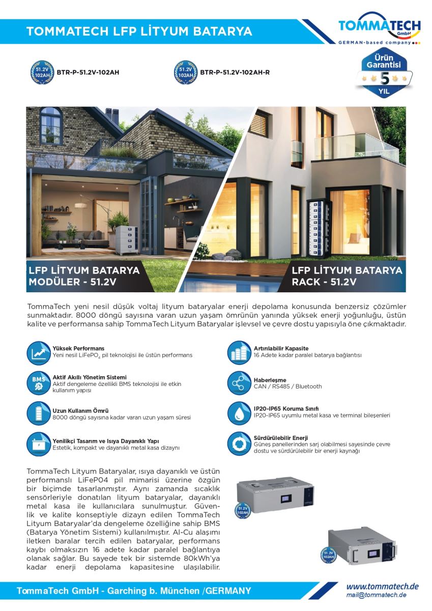 kalite ve performansa sahip TommaTech Lityum Bataryalar iÅŸlevsel ve çevre dostu yapısıyla öne çıkmaktadır.